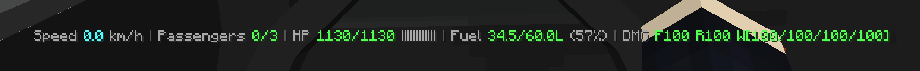 CoolCars displays important information (speed, fuel, status) directly above the player’s hotbar.